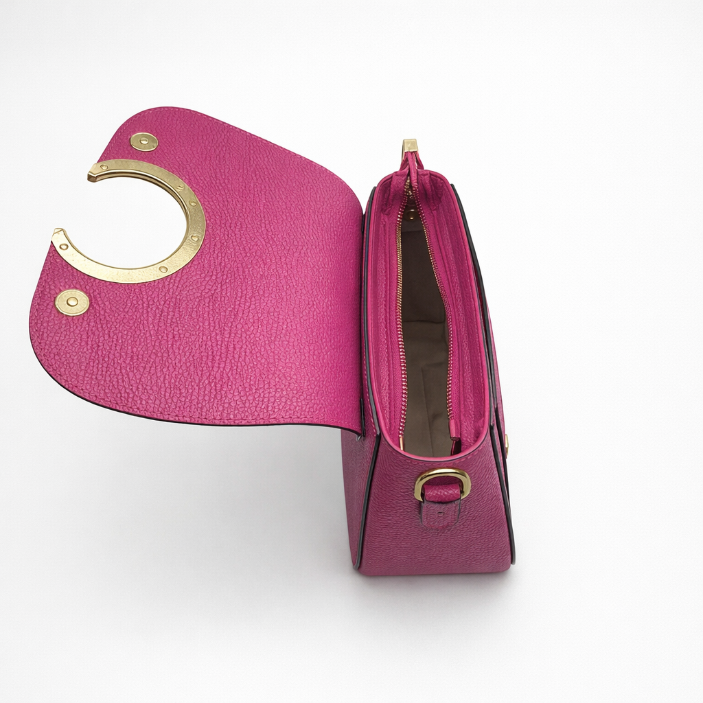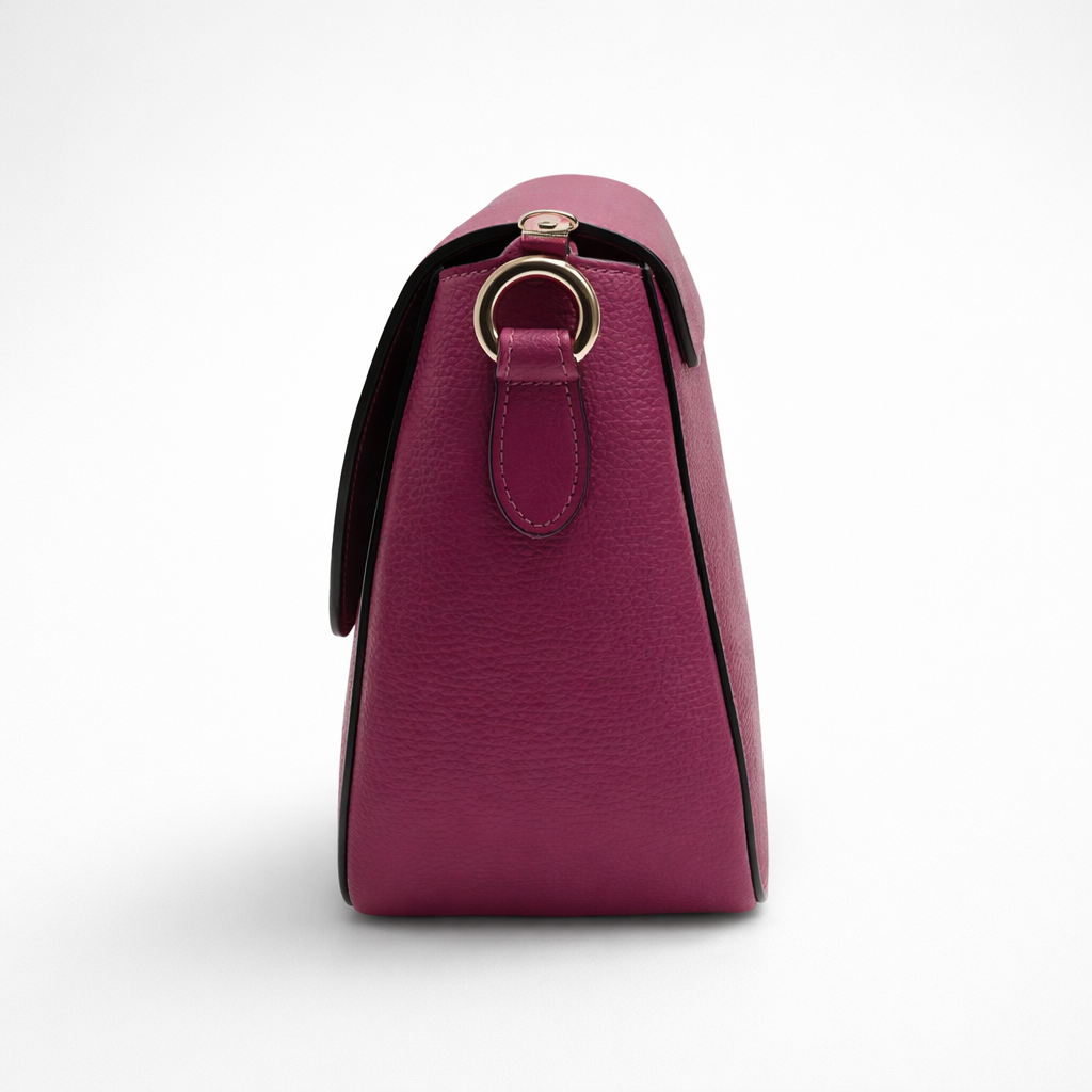 The Luna Crossbody is designed to move with you. Crafted in vibrant pebbled leather, its structured silhouette is elevated by a polished gold motif and a smooth magnetic closure that locks with a subtle snap.
