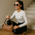 Our bags are crafted from premium leather and vegan leather, depending on the collection. To maintain their shape and finish, wipe gently with a damp cloth and avoid prolonged exposure to heat or direct sunlight.