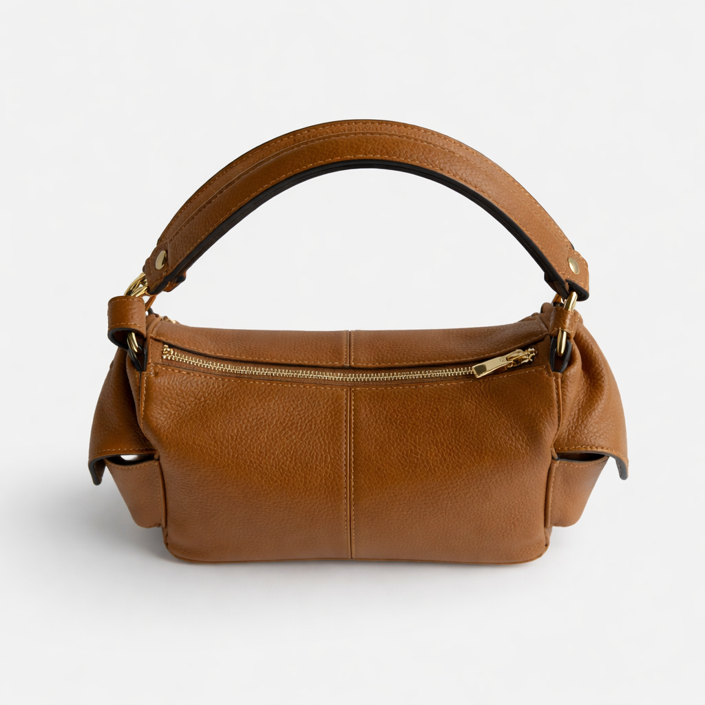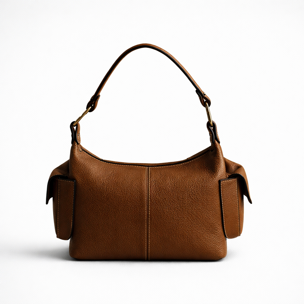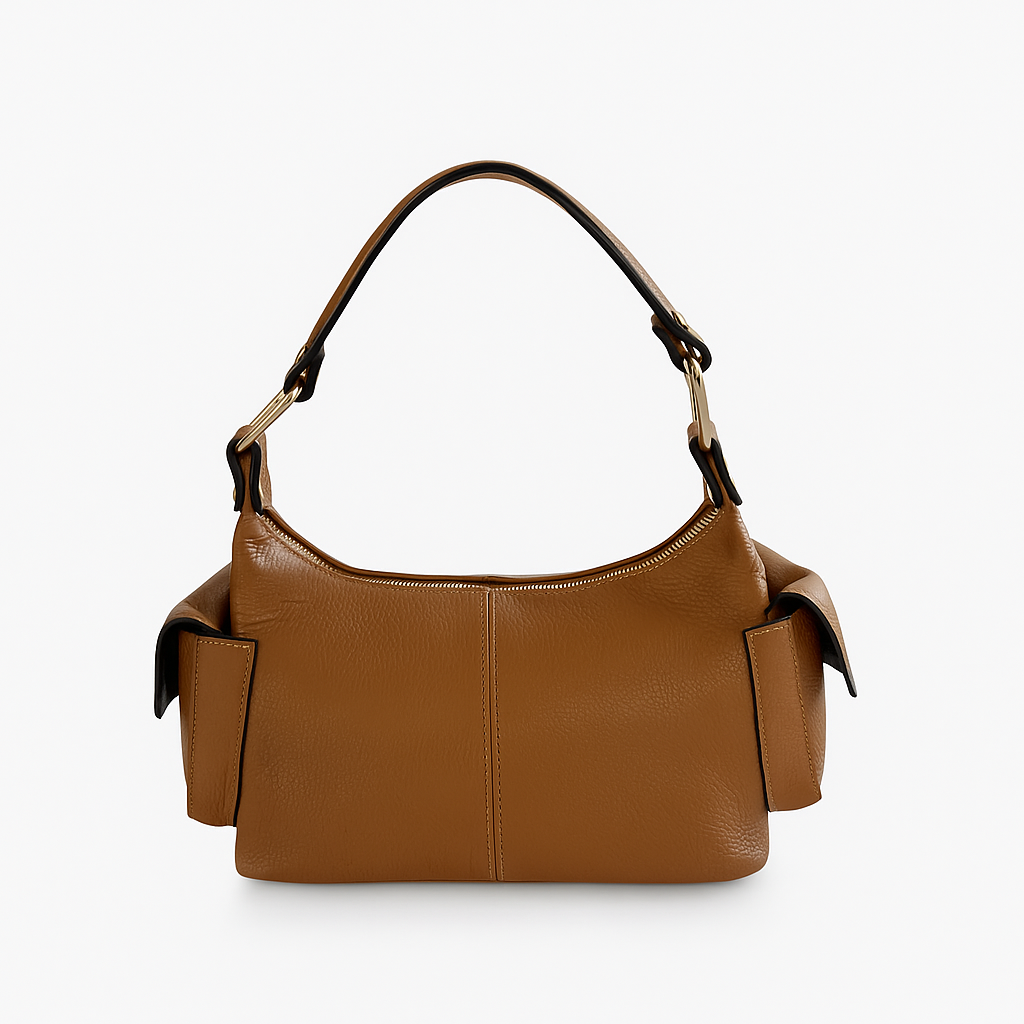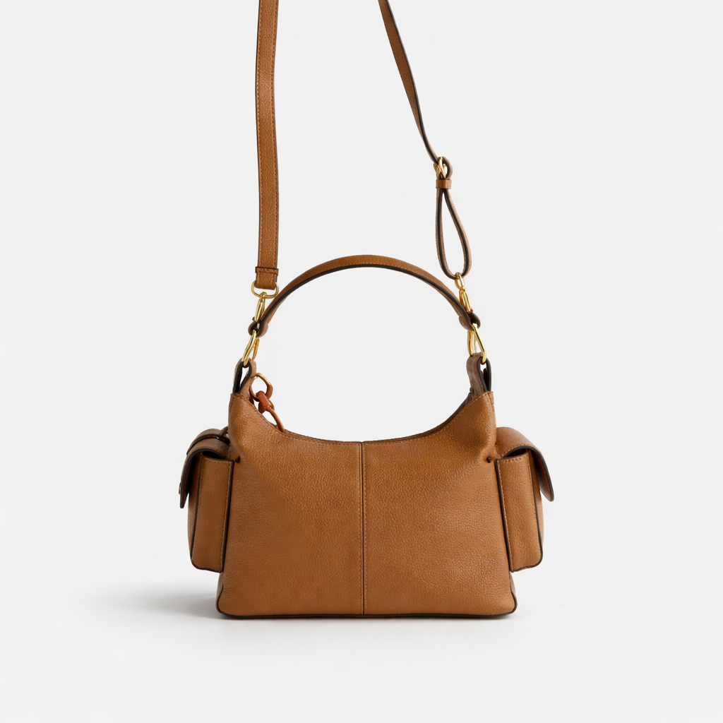 Crafted from supple pebbled leather, The Outpost features dual side pockets, nodding to the practicality of cargo pouches while maintaining a sculpted, high-fashion aesthetic. The detachable shoulder strap transforms it from a chic top-handle to an effortlessly slung crossbody, adapting to the wearer’s rhythm. Zippered closure, bold metal hardware, to complete the look—unexpected details that make a statement.