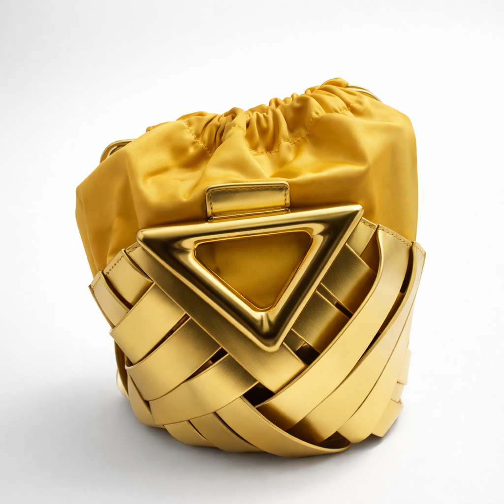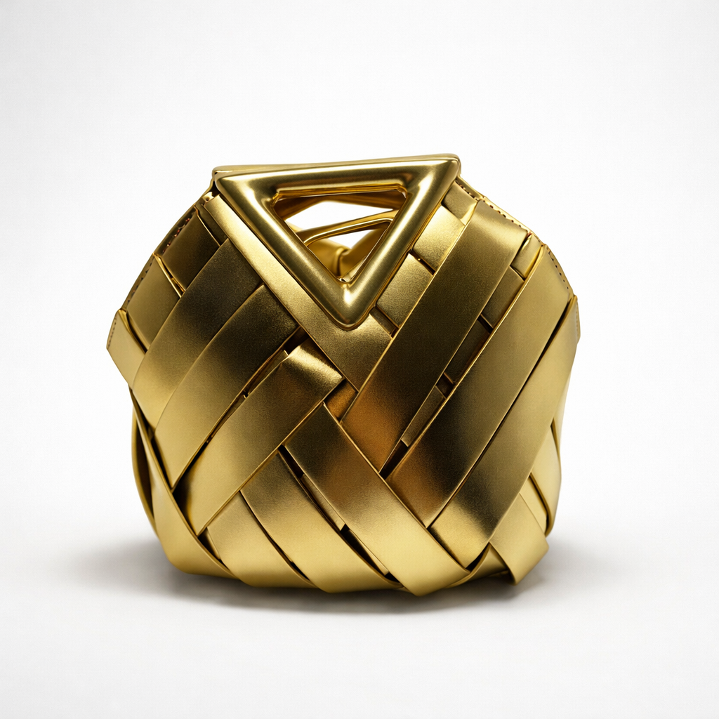 The Tapestry in Gold looks like a night out, but its medium-sized shape carries more than you’d expect. The metallic vegan leather glows like molten light, balanced by an inner drawstring pochette that keeps everything contained. Carry it by hand or crossbody.It’s drama, practicality, and glamour wrapped into one unmistakable piece.