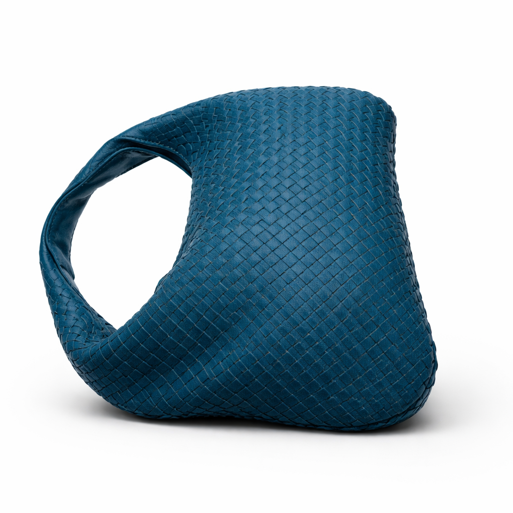 The colour lifts the woven surface, highlighting movement and fluidity as the bag shifts with every step.