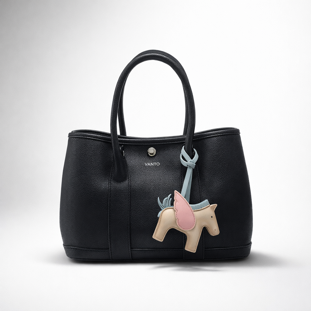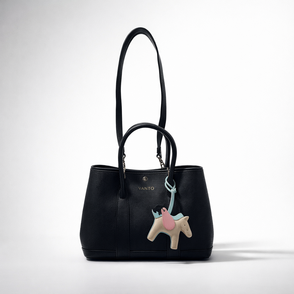 The Lunette in Black draws its DNA from one of Hermès’ most understated icons: the Garden Party tote. A structured, carry-everywhere shape designed to slip easily between city, work, and travel. Vanto’s take sharpens the silhouette in grained vegan leather and adds a detachable horse motif — a subtle wink to heritage, made contemporary. With dual handles for formality and a strap for motion, it strikes a balance between tradition and edge. The Garden Party does not just inspire it; it reimagines it for now.