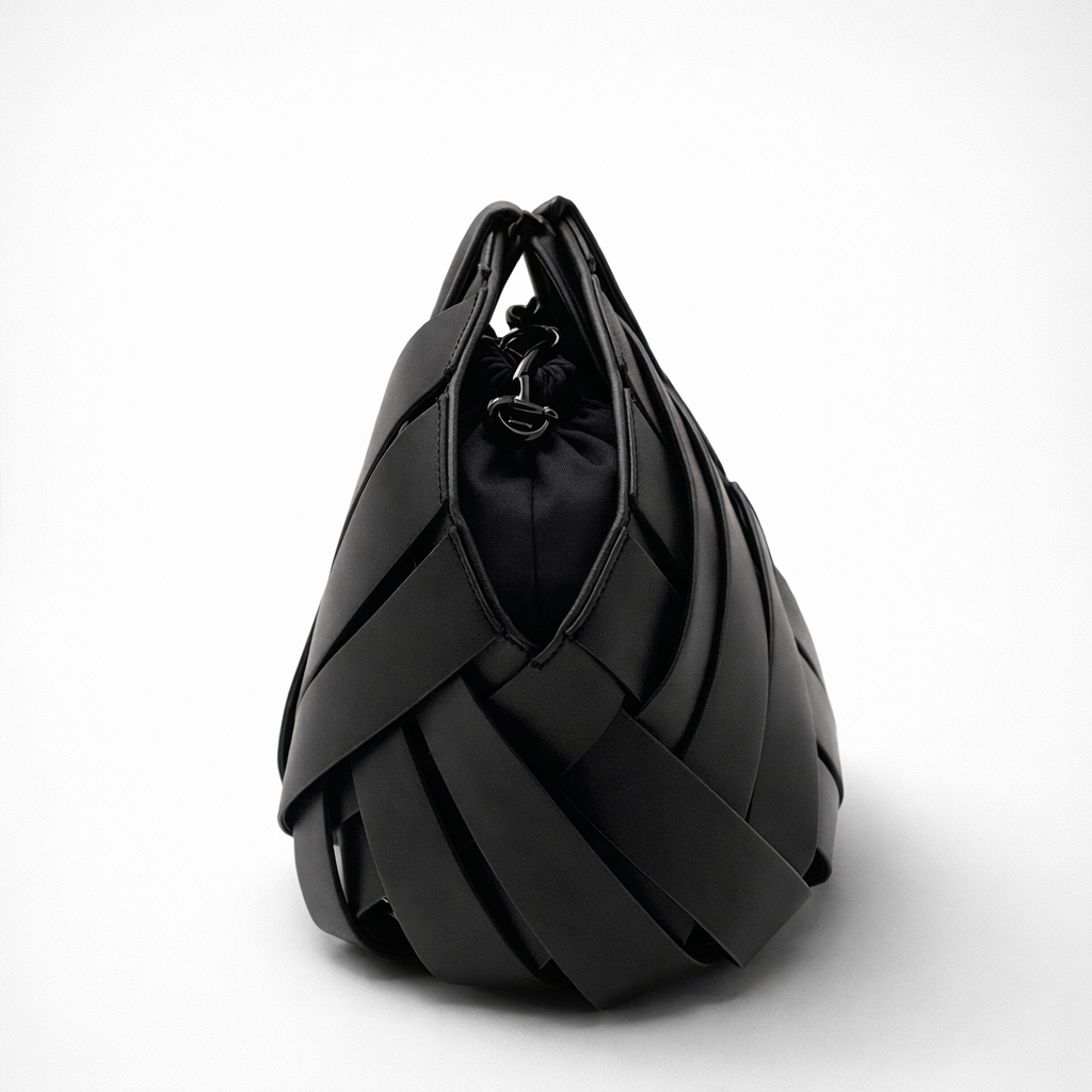 The Tapestry in Black is sculptural, soft, and quietly powerful — and despite its compact-looking weave, it’s a true medium-sized bag with generous space. It comfortably carries your daily items without losing its shape. The interwoven straps create structure, the internal drawstring pochette keeps everything secure, and the detachable strap lets you wear it your way. Crafted from premium vegan leather, it’s understated, confident, and always relevant.