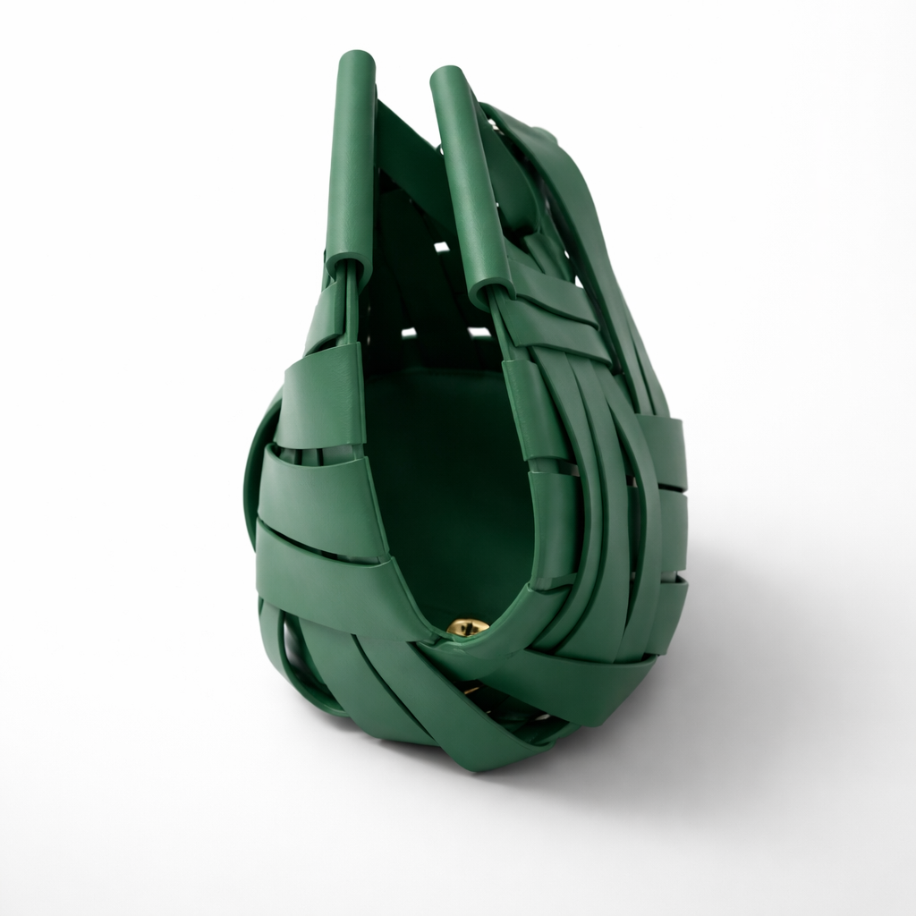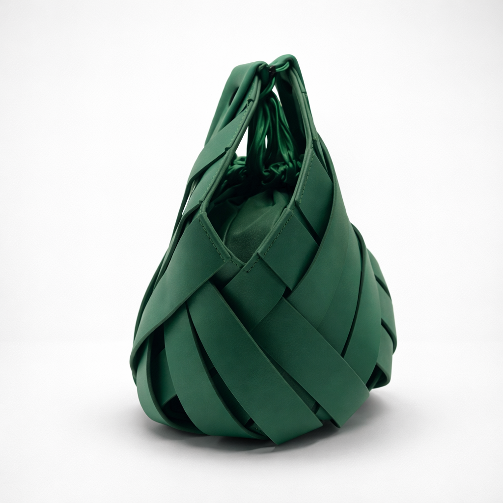 The Tapestry in Green brings energy without sacrificing practicality. Its sculpted weave sits on a medium frame, roomy enough for your everyday belongings — a perfect balance between statement and function. The internal drawstring pochette keeps things secure, while the detachable strap gives you styling freedom. A standout shade for women who set the tone, not follow it. Delivered with a leather strap.