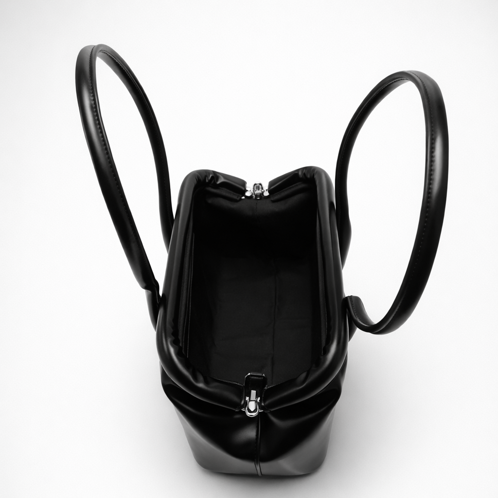 The open top is finished with a concealed magnetic snap — effortless, fluid, and unfussy. It keeps the line clean while allowing easy access, reinforcing the bag’s relaxed authority. Long shoulder straps fall naturally, turning movement into part of the design.