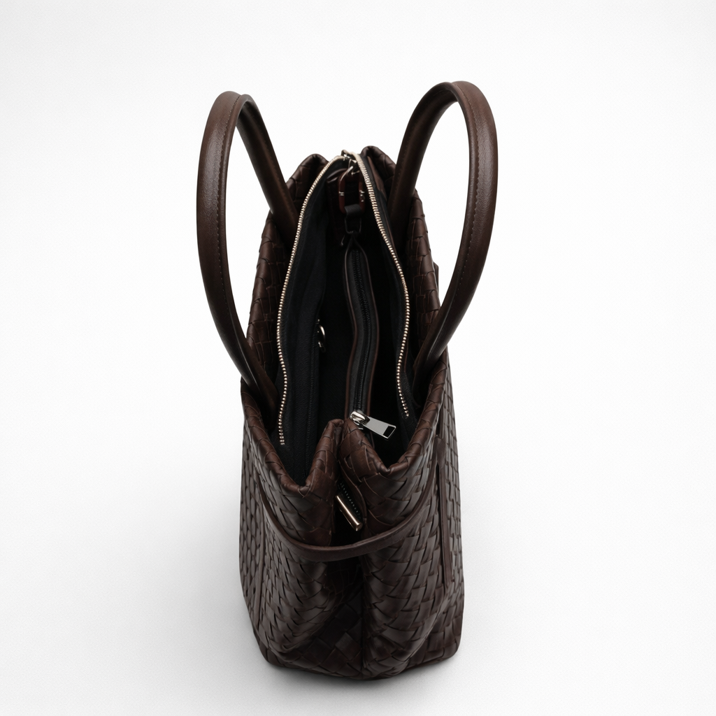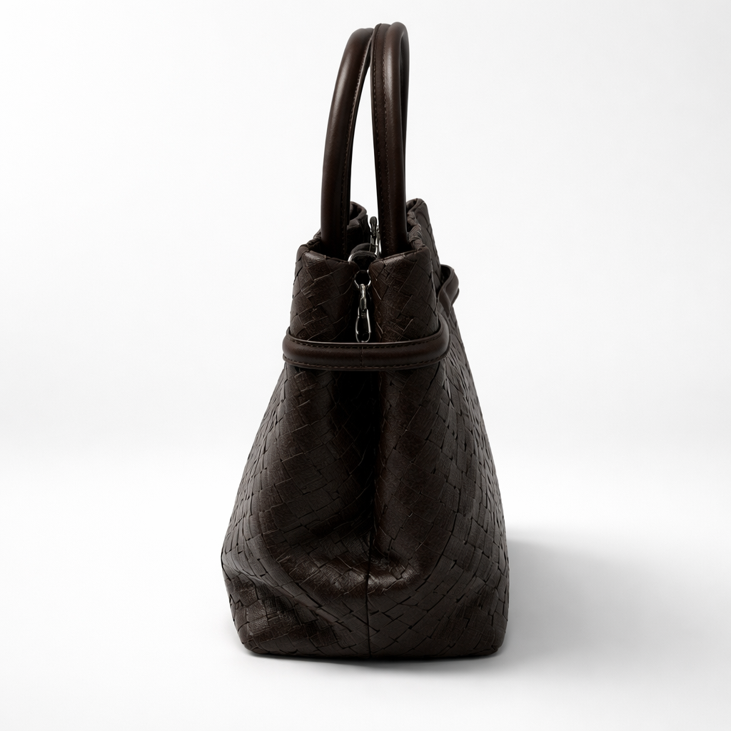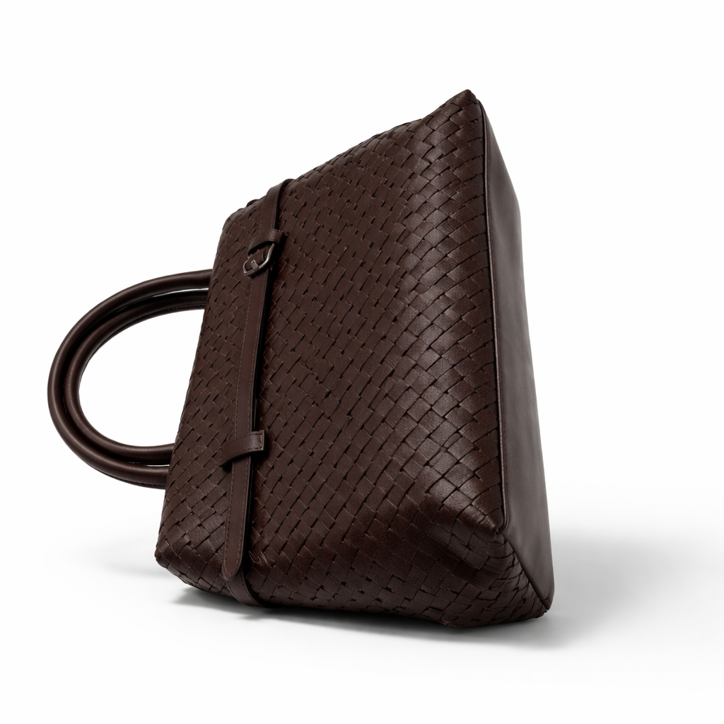 The intrecciato weave becomes richer and more dimensional in this shade, revealing depth and softness with every movement.