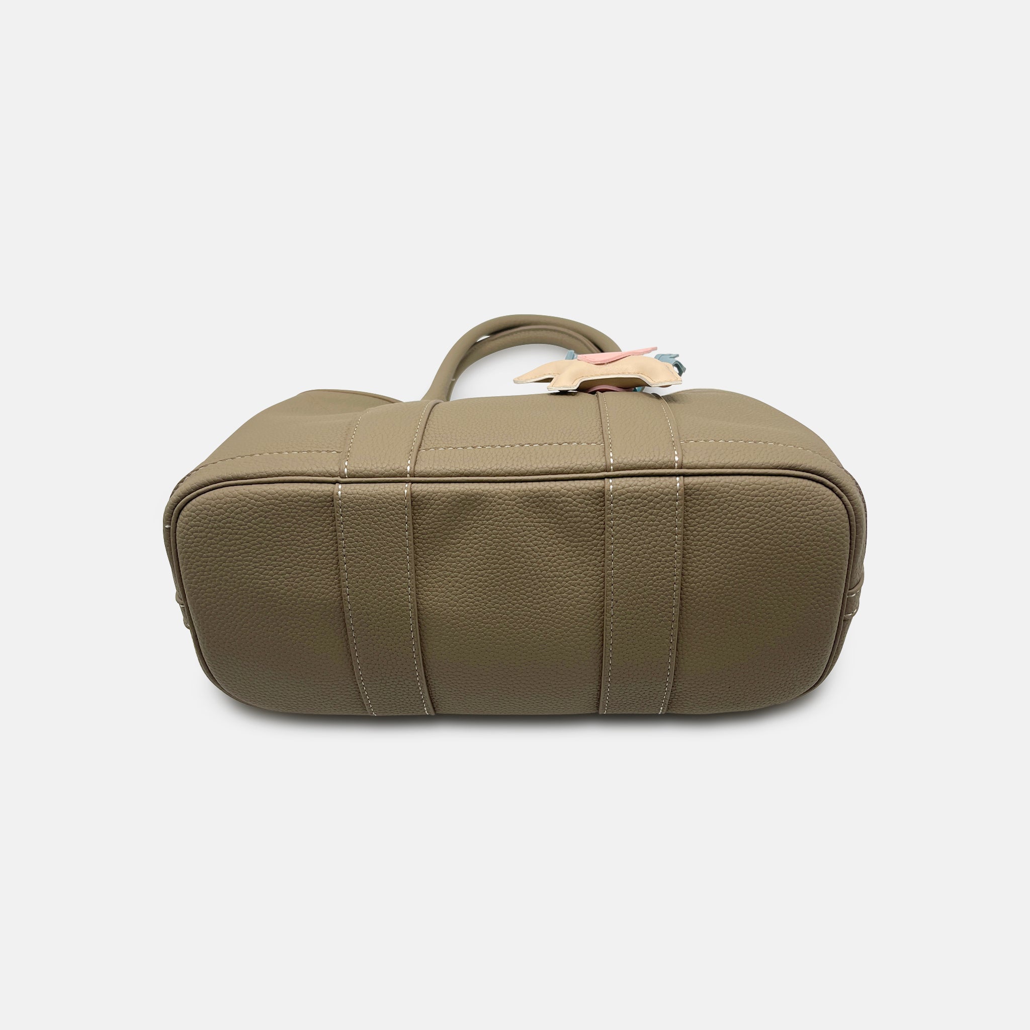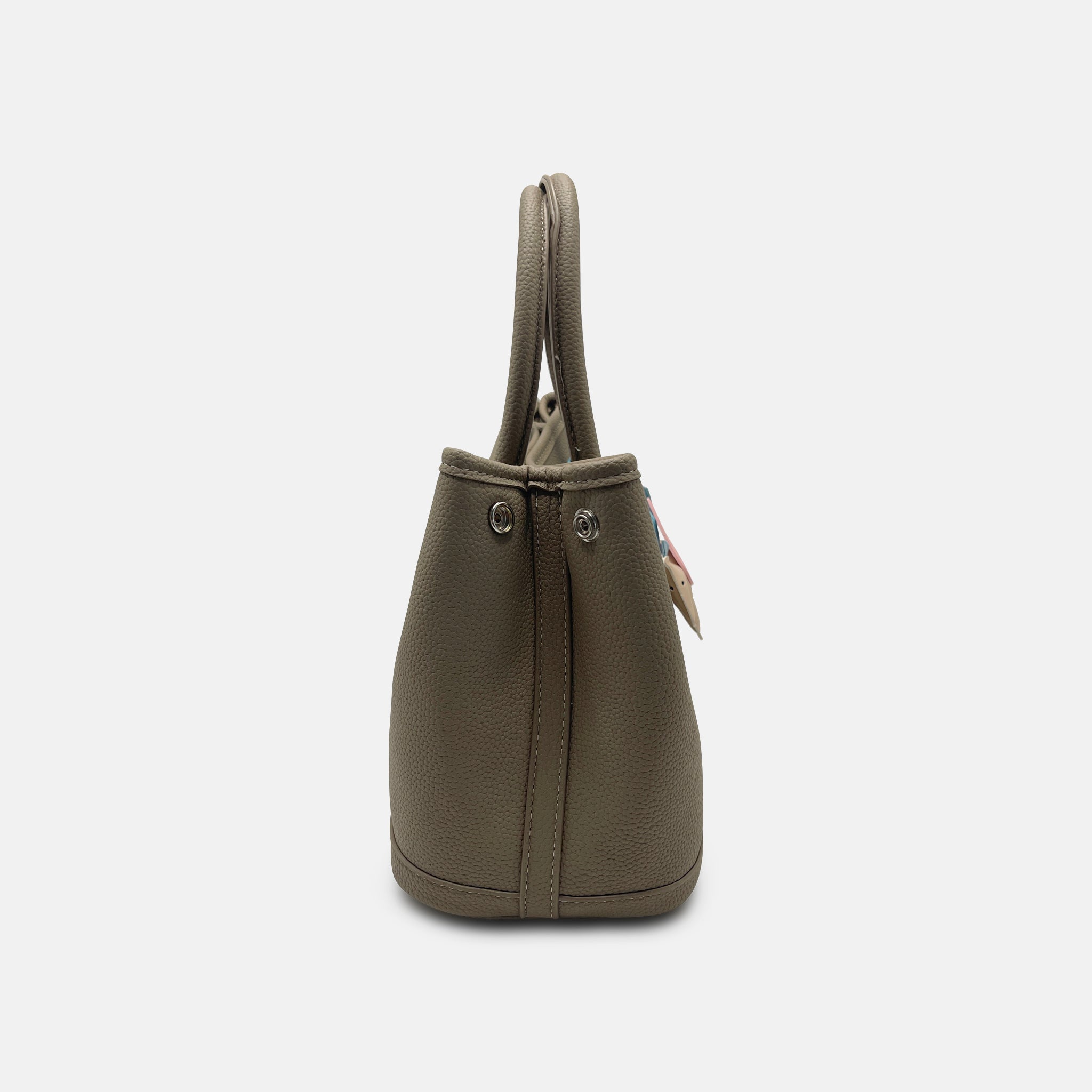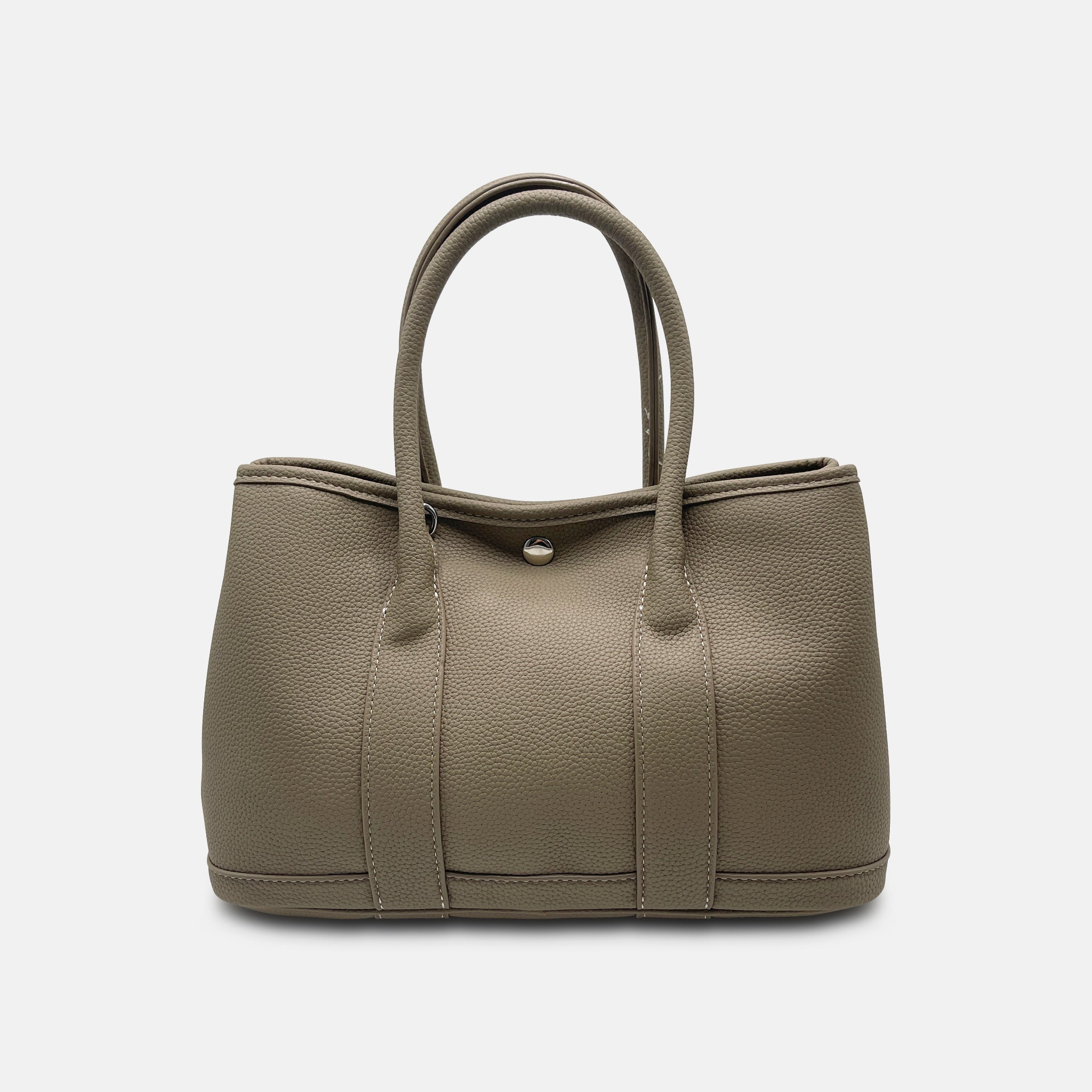 The Lunette in Taupe is ease redefined. Referencing the Hermès Garden Party, it carries the same quiet, timeless outline — rounded, structured, and immediately versatile. But the details mark it as Vanto: a warmer neutral palette, disciplined hardware, and a horse charm that softens the seriousness.