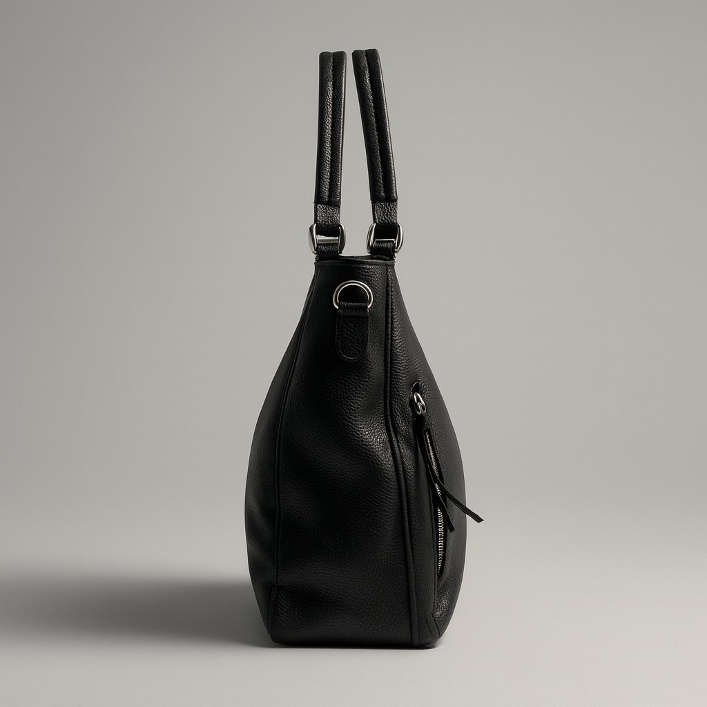 The Ren in Black walks the line between relaxed and refined. Its soft structure is offset by zippered side panels and metal hardware that frame the silhouette just enough. With room to carry more and design that doesn’t try too hard, this is one of those rare finds that feels both effortless and deliberate.