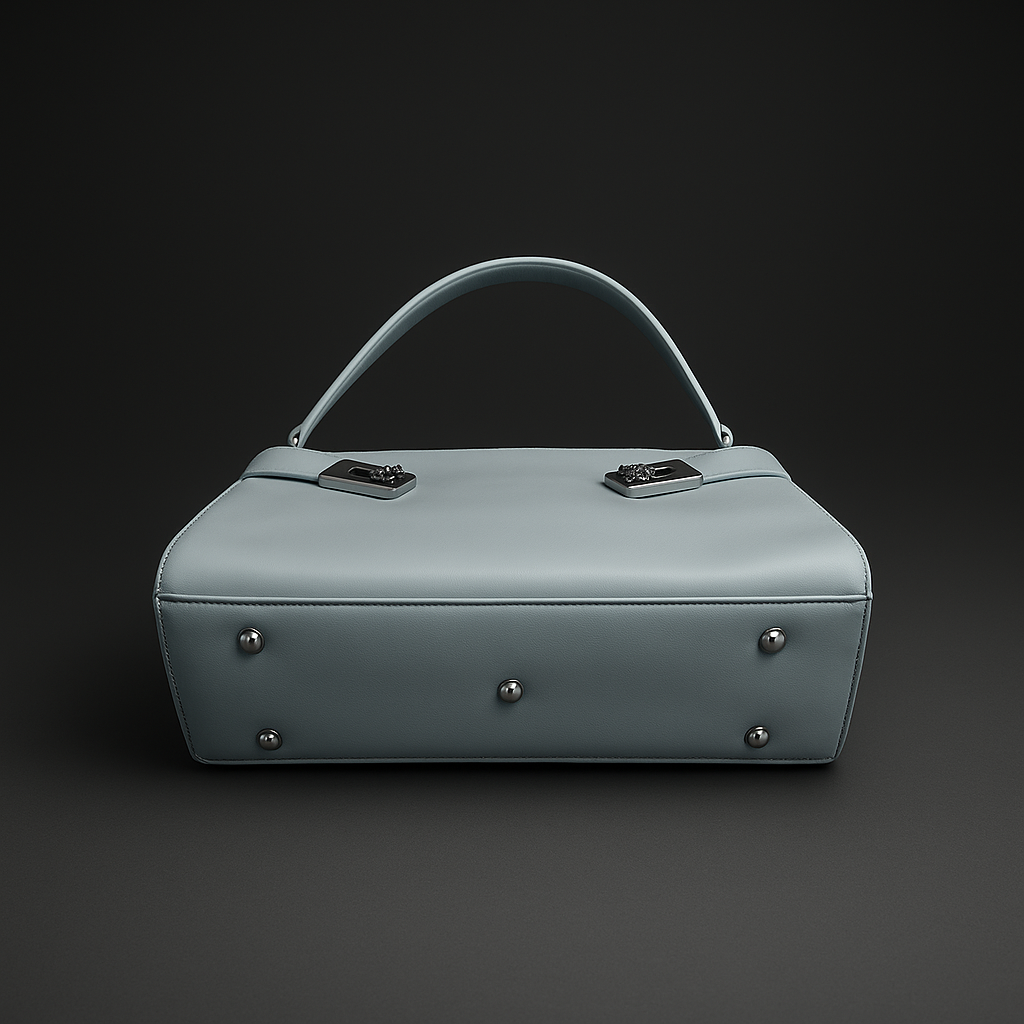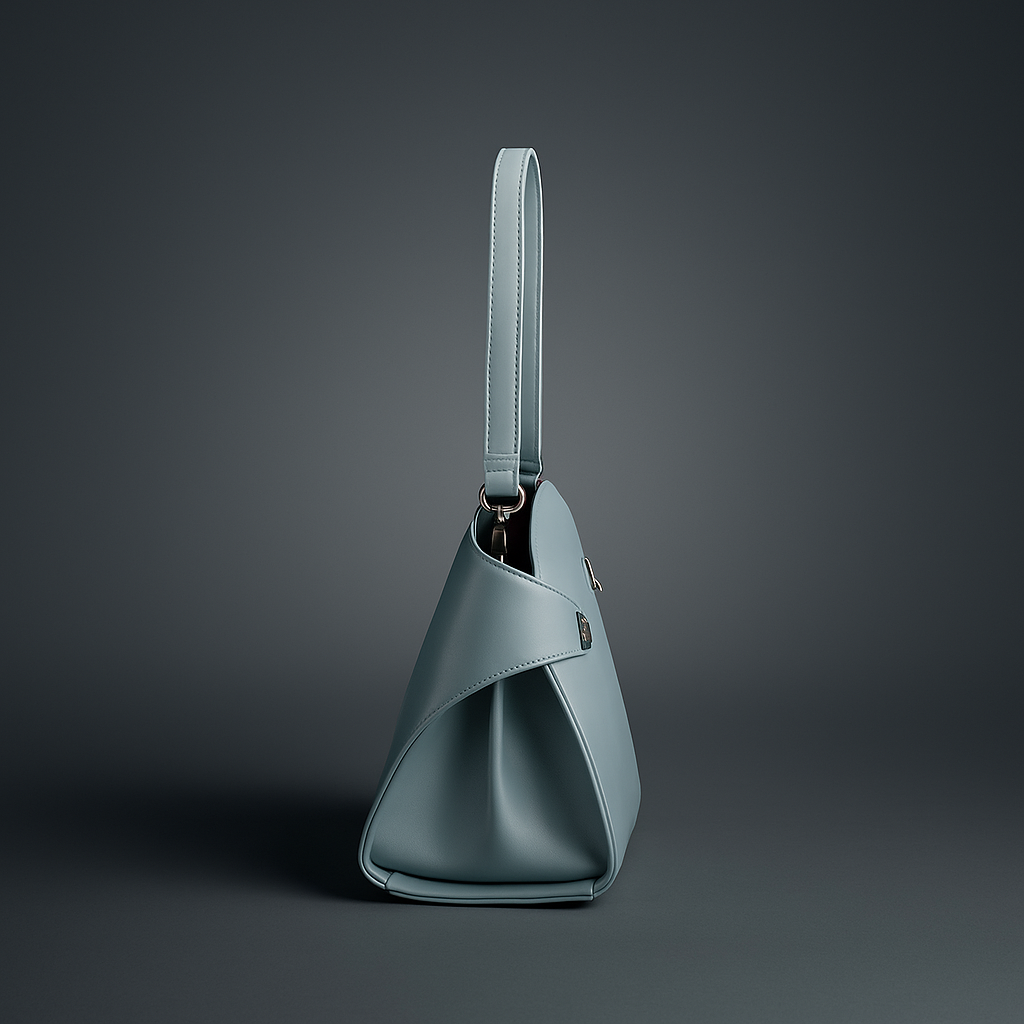 The Revenant in Steel Blue is one of the three standout pieces of Second Skin — Spring/Summer ’25. Its shape is clean and deliberate, the short strap designed to sit just off the shoulder, finished with sleek silver hardware that gives the pale surface a sharp edge.
