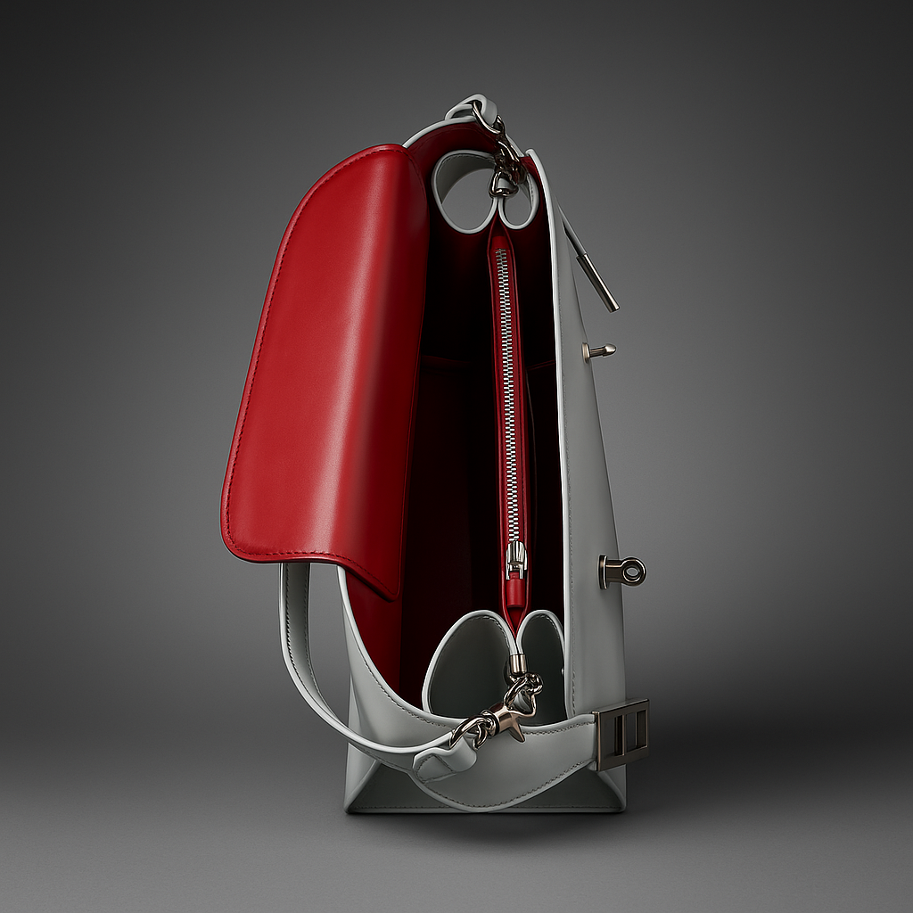 Inside, a flash of deep red breaks the calm — a detail that changes everything the moment it’s seen. Cool on the outside, heat on the inside.