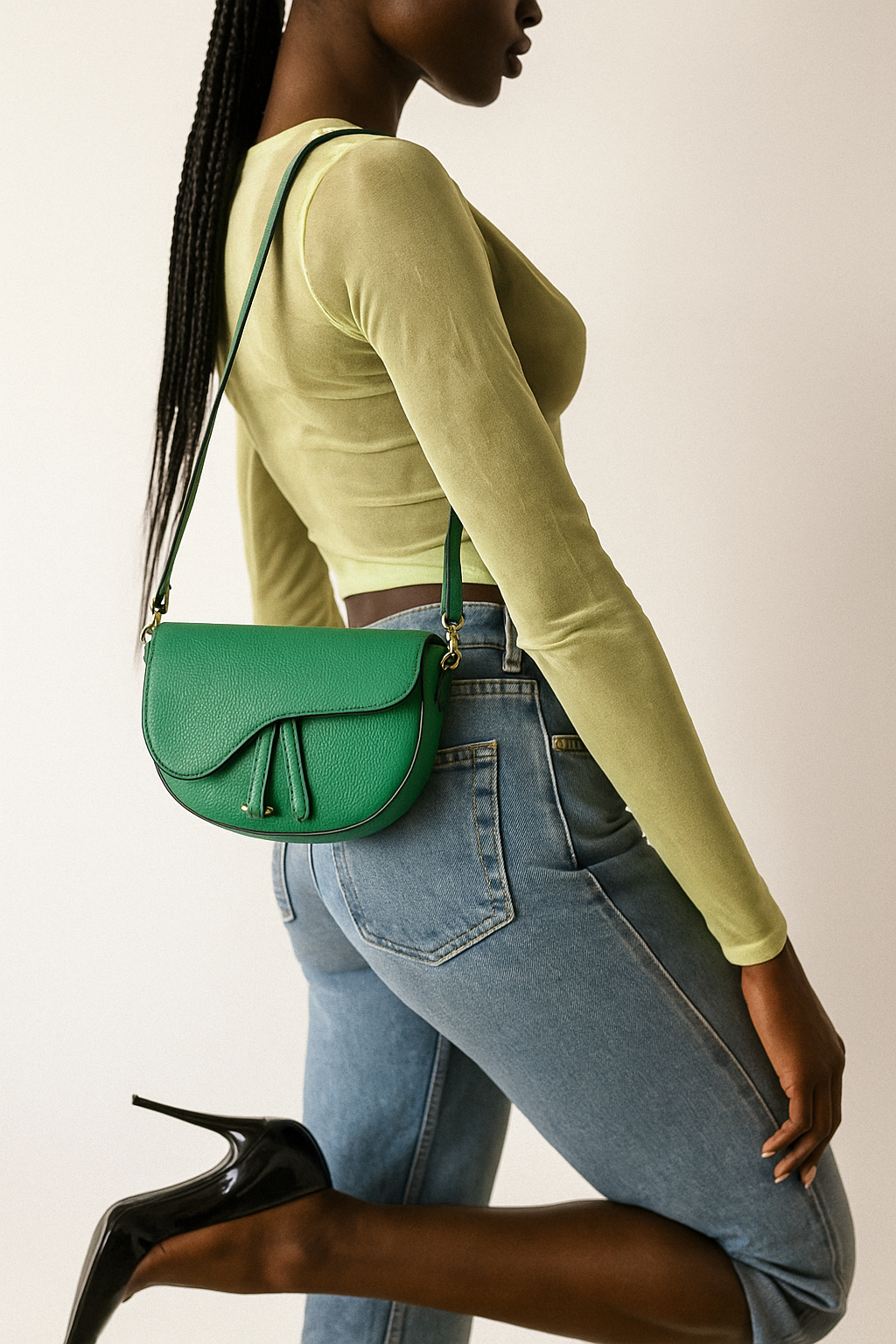Our bags are crafted from premium leather and vegan leather, depending on the collection. To maintain their shape and finish, wipe gently with a damp cloth and avoid prolonged exposure to heat or direct sunlight.